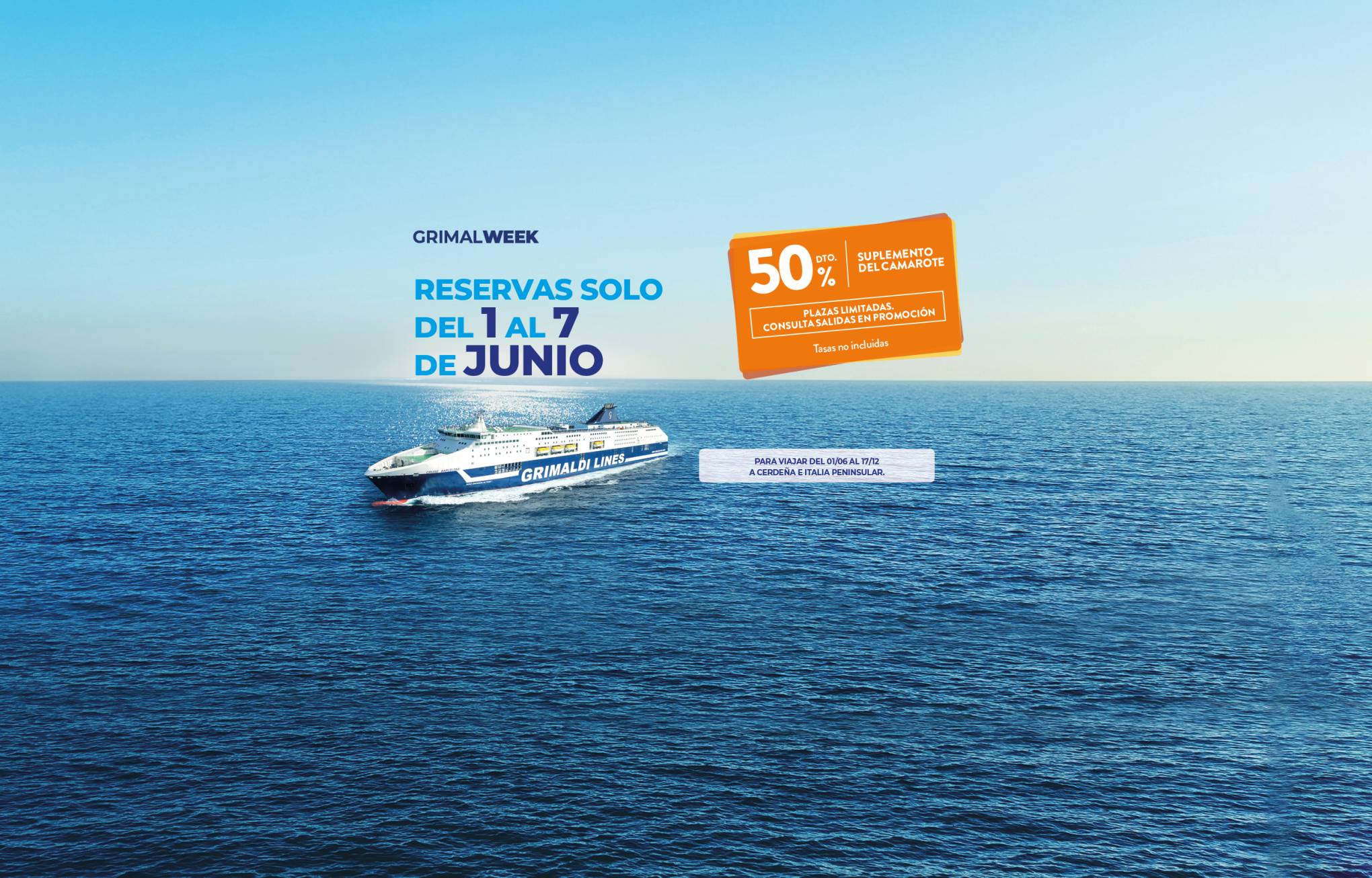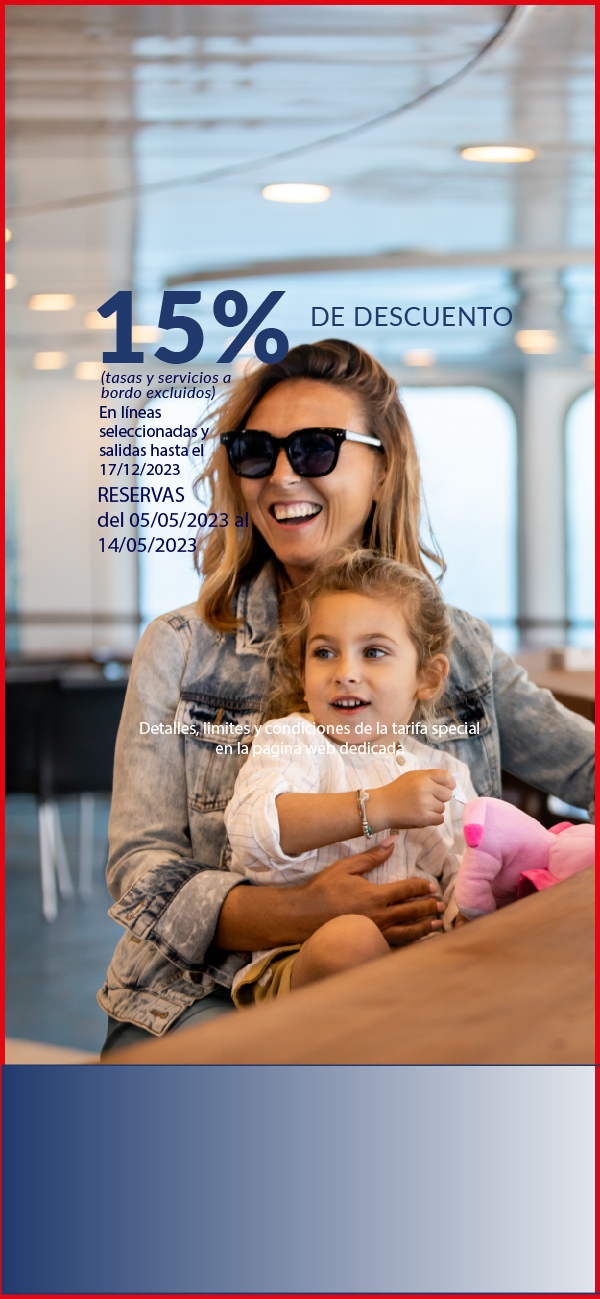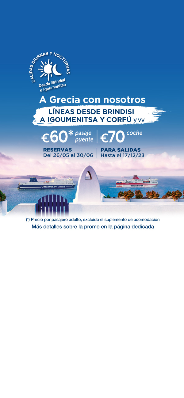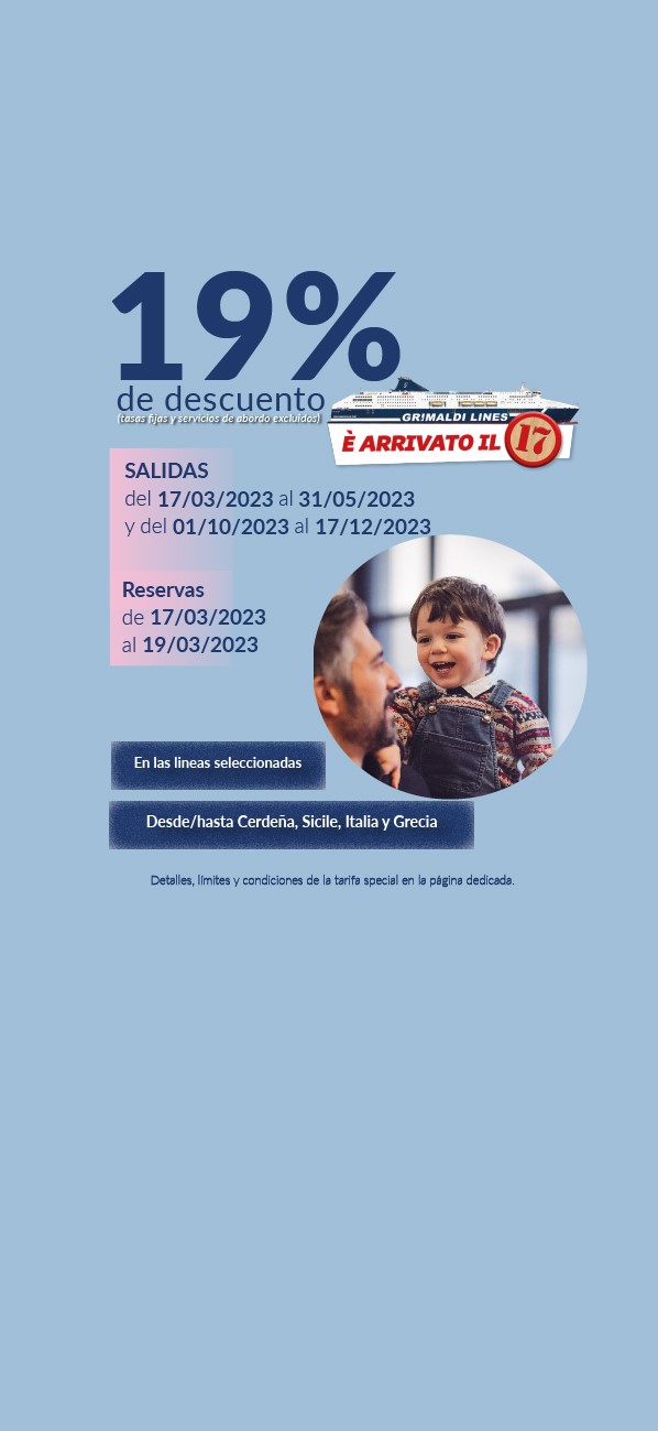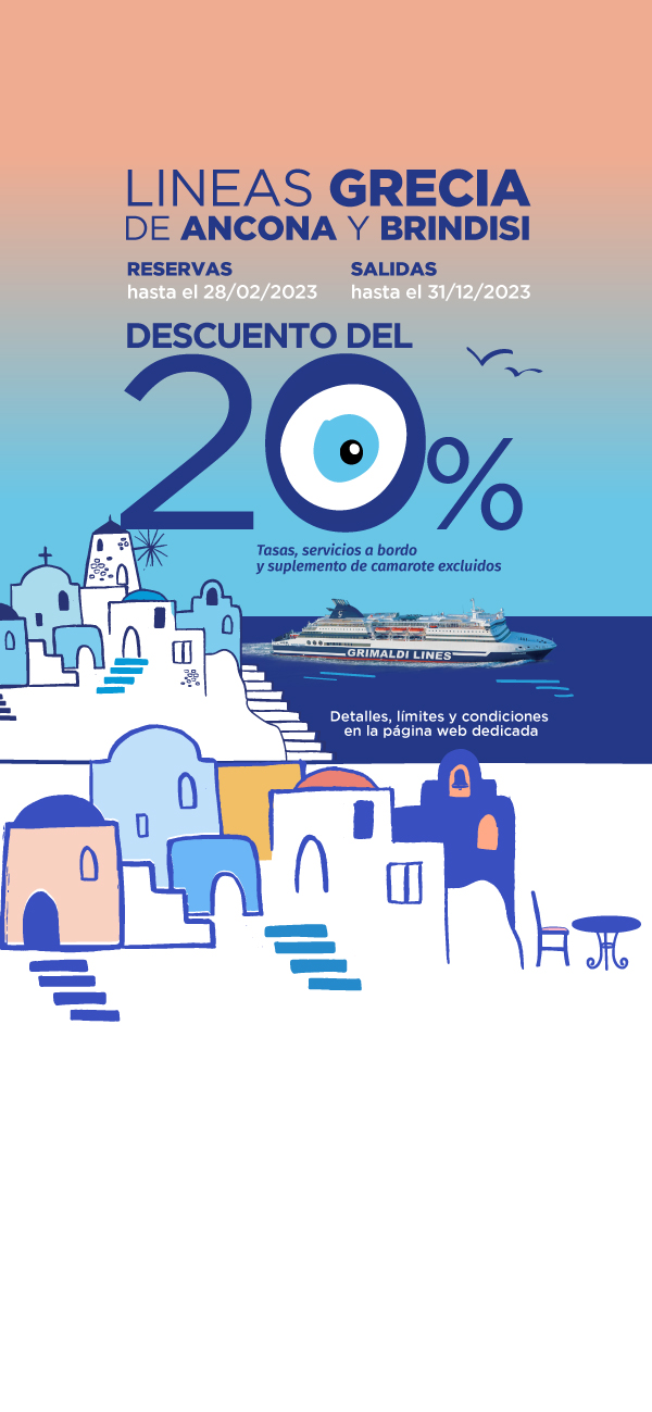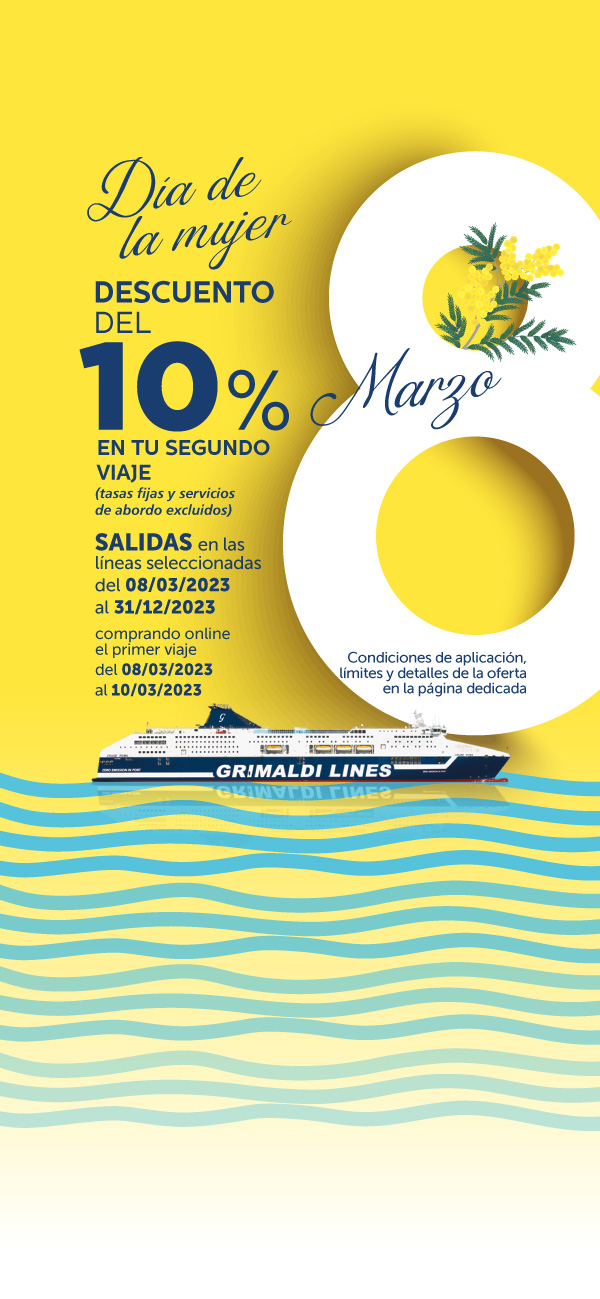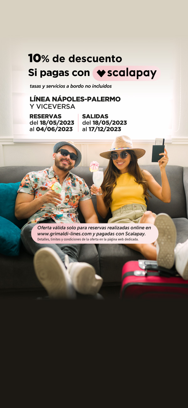 Las salidas hasta el 31/05/2026 y del 01/10/2026 al 31/12/2026 están operadas por otra compañía naviera. Las reservas se realizan mediante la redirección a la página web de la mencionada Compañía y con las condiciones allí establecidas. Para cancelar / cambiar el billete y para cuestiones relacionadas con el servicio (por ejemplo, asistencia e información a los pasajeros o reclamaciones), se ruega ponerse en contacto con la compañía operadora mencionada anteriormente. Si desea comprar un billete de ida y vuelta que incluya diferentes rutas o fechas en las que operan compañías diferentes, puede comprar dos billetes independientes o bien contactarnos al +39 081 49644 o al correo electrónico info@grimaldi.napoli.it