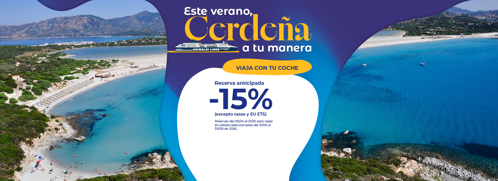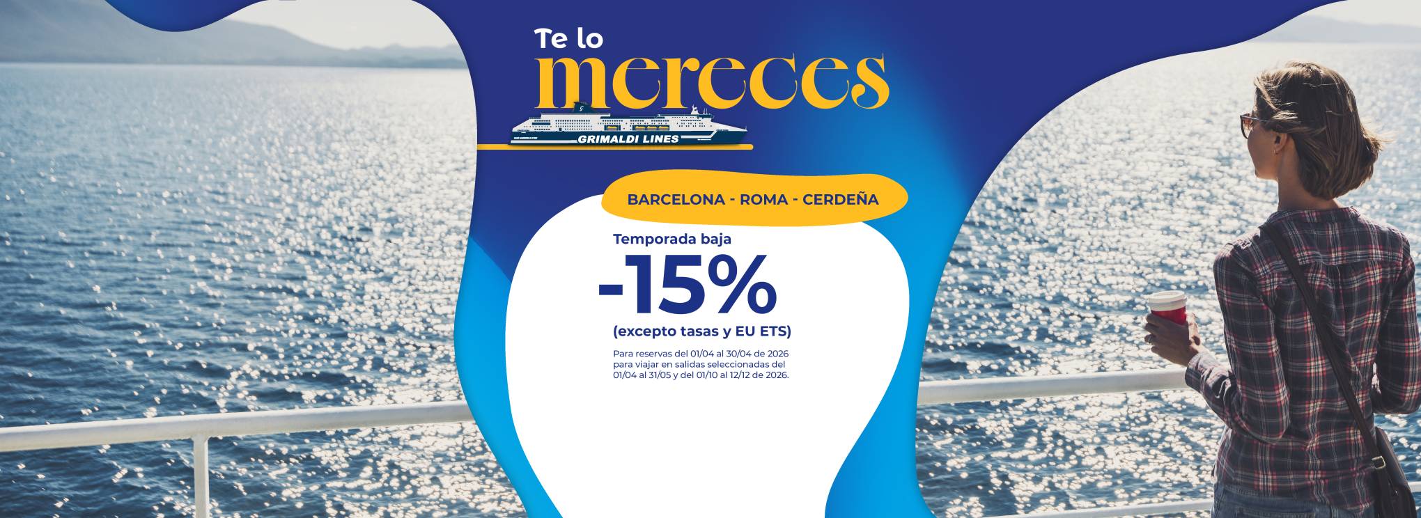 Las salidas hasta el 31/05/2026 y del 01/10/2026 al 31/12/2026 están operadas por otra compañía naviera. Las reservas se realizan mediante la redirección a la página web de la mencionada Compañía y con las condiciones allí establecidas. Para cancelar / cambiar el billete y para cuestiones relacionadas con el servicio (por ejemplo, asistencia e información a los pasajeros o reclamaciones), se ruega ponerse en contacto con la compañía operadora mencionada anteriormente. Si desea comprar un billete de ida y vuelta que incluya diferentes rutas o fechas en las que operan compañías diferentes, puede comprar dos billetes independientes o bien contactarnos al +39 081 49644 o al correo electrónico info@grimaldi.napoli.it